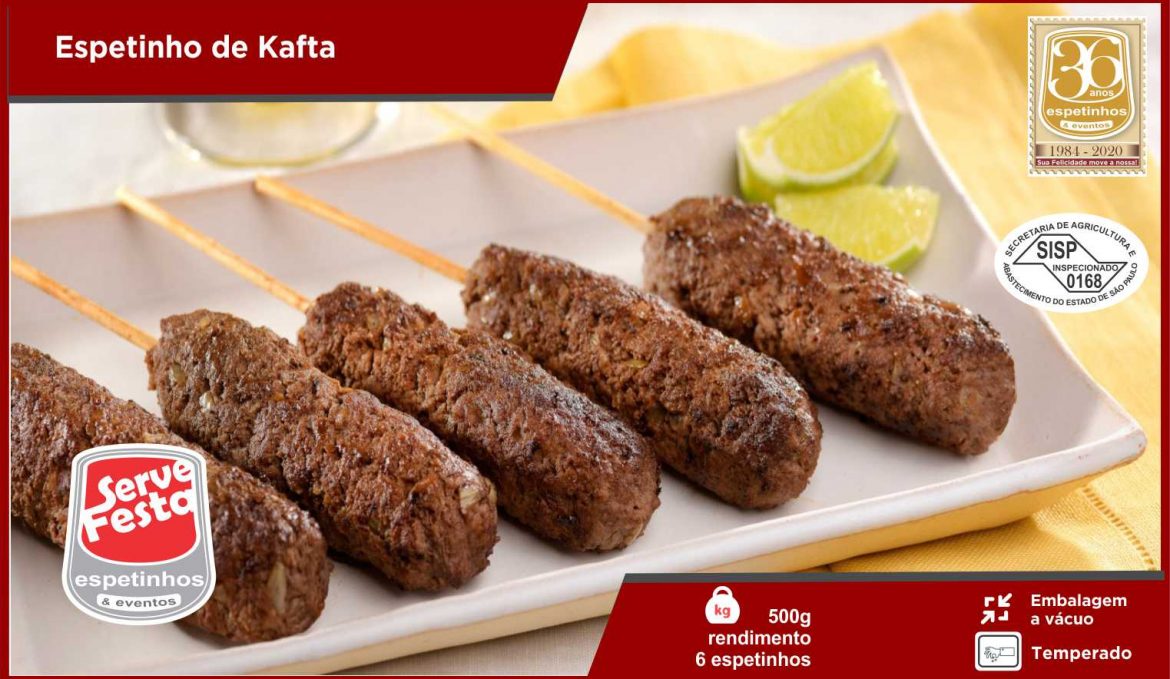 Carne Bovina moída com tempero tradicional Libanês no espeto. Apresentado em embalagem a vácuo de 500g. , prontinho para assar ou grelhar.