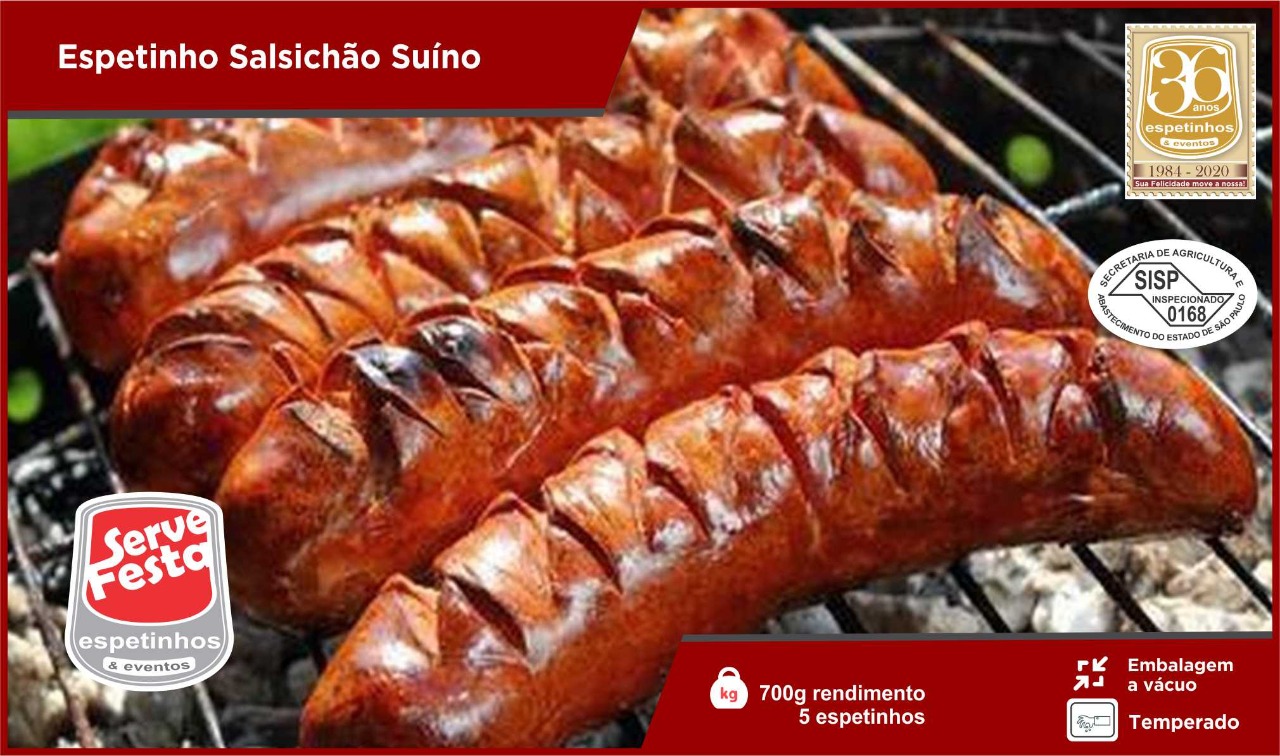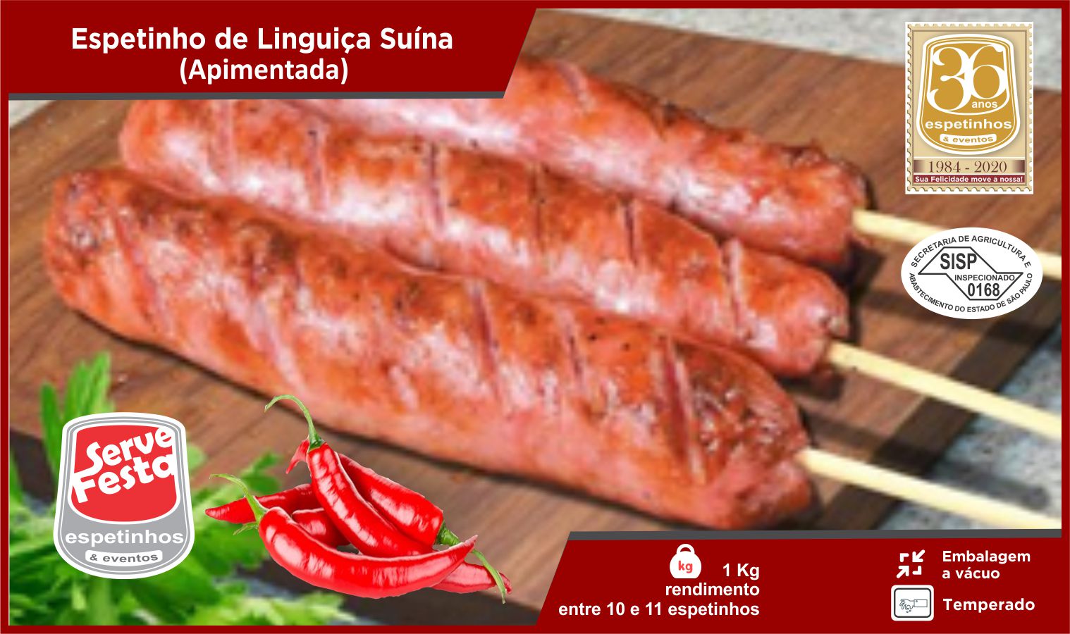 Linguiça pura suína no espeto em embalagem a vácuo de 1kg, prontinha para assar ou grelhar.